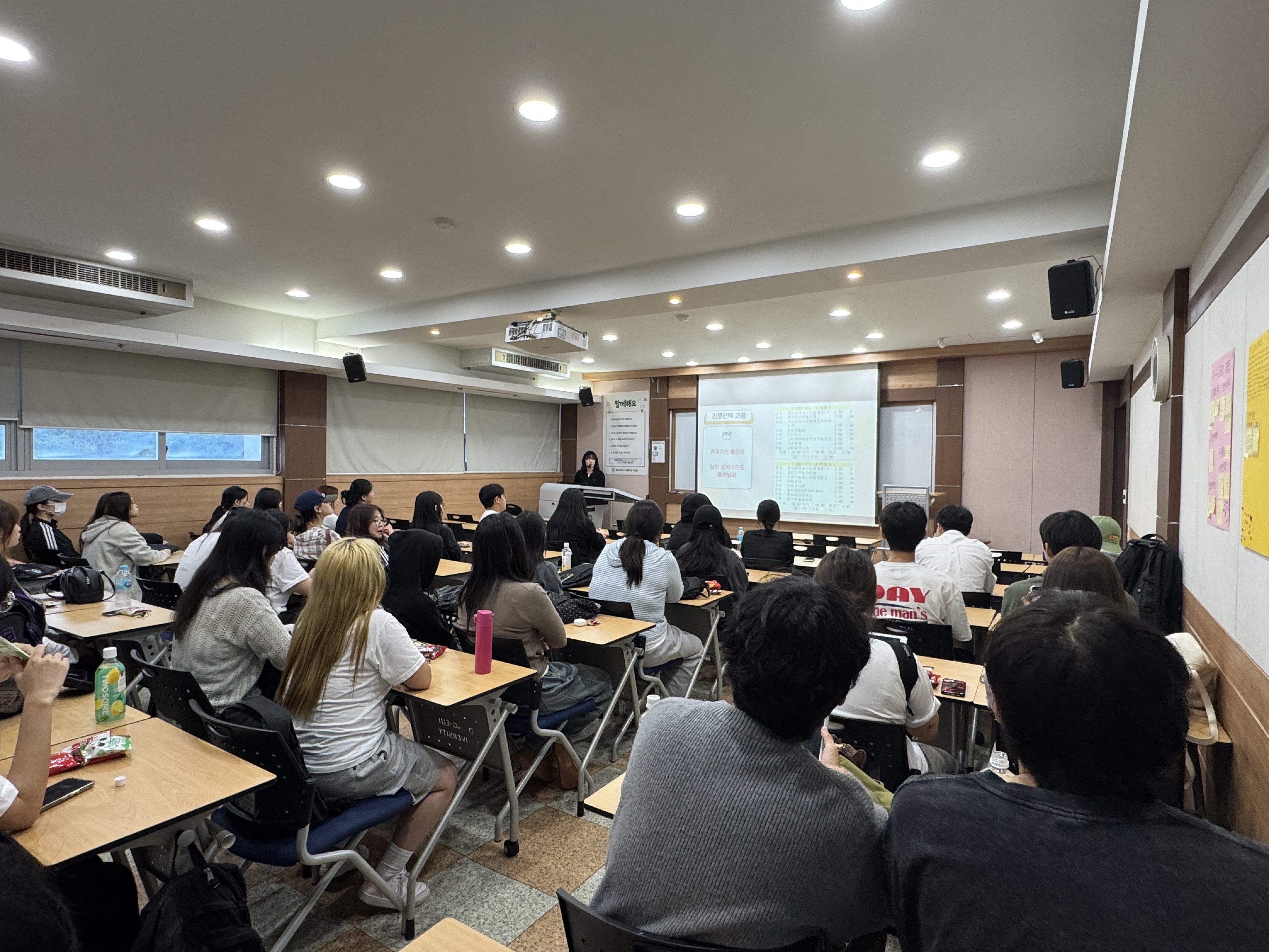 이번 프로그램에서는 한국석유공사돌고래어린이집 김현아 선생님께서 직접 참여하여 어린이집 현황과 푸르니보육지원재단의 보육프로그램 실천 사례를 소개하고, 학과 입학 후 코로나 팬데믹으로 겪은 어려움과 이를 극복한 경험을 공유하였습니다. 또한 봉사, 근로, 실습, 학술제, 연구 활동 등 다양한 경험을 통해 자신의 역량을 강화한 사례를 나누며, 주어진 기회를 적극적으로 도전하고 열정적으로 활용하는 자세의 중요성을 강조했습니다. 재학생들은 선배의 실제 경험과 조언을 통해 진로와 취업 준비에 대한 구체적인 인사이트를 얻고, 학부 시절 다양한 활동의 중요성을 다시 한 번 인식하는 뜻깊은 시간을 가졌습니다.