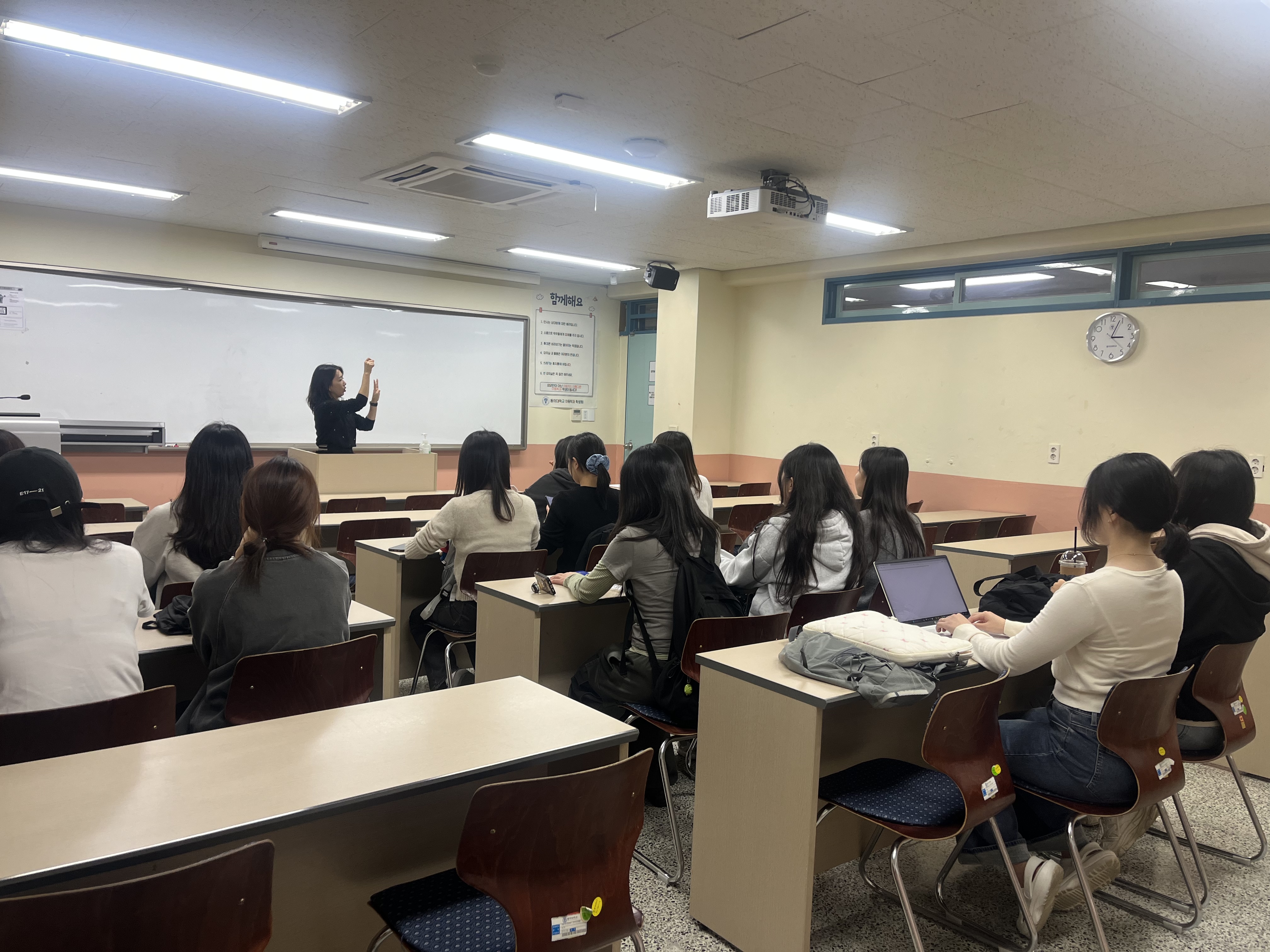 2025학년도 2학기 산업체 전문가 멘토링 프로그램 3회차에서는 푸르니보육지원재단 평교사 필기시험 대비 학습을 진행하였습니다. 이번 프로그램에서는 온라인 필기시험(40분, 20~25문항)의 출제 유형을 분석하고, 푸르니보육지원재단의 보육프로그램과 영유아 발달, 교사의 역할 등 핵심 내용을 중심으로 학습하였습니다. 특히 문제 속 표현 분석, 실제 사례 적용 연습을 통해 실전 감각을 강화하였으며, 이를 통해 학생들은 시험에 대한 자신감과 응시 안정감을 높이고 보육전문가로서의 기초 역량을 다질 수 있었습니다.