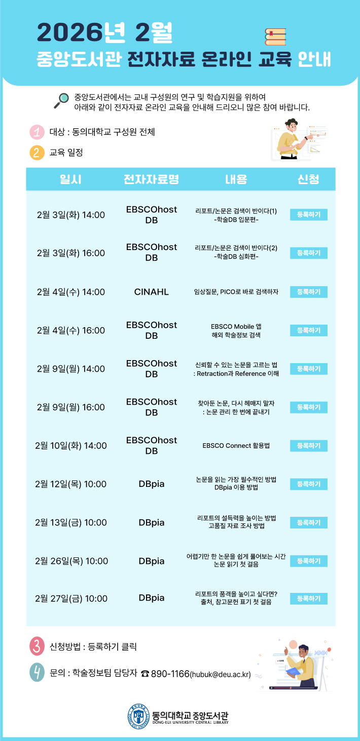 2026년 2월 중앙도서관 전자자료 온라인 교육 안내